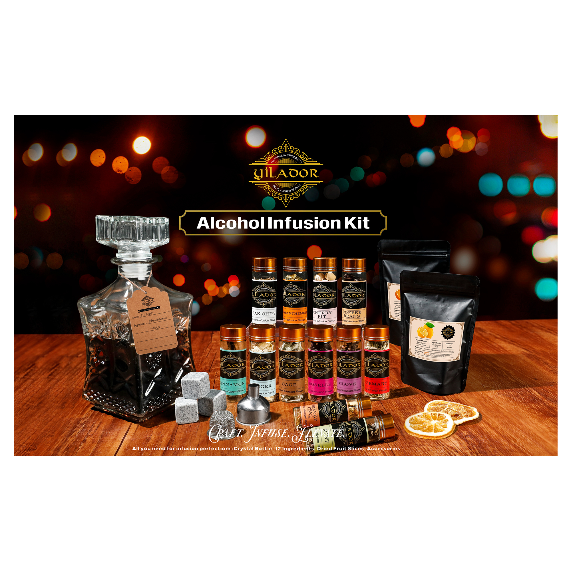 - Make Your Own Infused Drinks with Natural Ingredients of high quality and Any Alcohol Base: The Alcohol Infusion Kit is perfect Gifts for anyone who wants to create their own unique drinks with natural ingredients and any alcohol base.